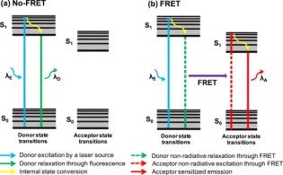 Fluorescence Lifetime and Fluorescence Resonance Energy Transfer. What is Fluorescence Lifetime?Fluorescence can be thought of as an energy transitions from the electronic ground state (S0) to its excited state (S1) in a molecule. This transitions is produced by incident light with the appropriate energy (eg light with a wavelength of 488nm has enough energy to excite GFP to S1).The fluorescent molecule stores the absorbed energy for a short time until it is emitted as fluorescence. The time a molecule spends in its excited state is known as the fluorescence lifetime. This time is usually nano-seconds (10-9s) for most of the fluorescent probes used in biological applications. Biological Uses for lifetime measurementsDetermination of the cellular environment containing the sample molecules such as pH, temperature, polarity.Measuring the distances between different parts of the same fluorescently tagged protein or different fluorescently tagged proteins (FRET measurements).What is Fluorescence Resonance Energy Transfer (FRET)?FRET as a techniques has been around for over 20 years with thousands of scientific papers published either developing it or using it in biological applications. Consequently the mechanics of FRET are very well understood. FRET describes the non-radiative transfer of energy stored in an excited fluorescent molecule (donor) to a non-excited different fluorescent molecule (acceptor) in its vicinity.Three conditions must be fulfilled for FRET to take place:Overlap of donor emission spectrum with acceptor excitation spectrumMolecules must be in close proximity (~10nm).Molecules must have the appropriate relative orientation FLIM-FRET Experimental DesignCulture cells with proteins of interest expressing required fluorescent proteins (eg GFP and mCherry, which is what this protocol used)Check that the cells are expressing the fluorescent proteins in the correct localisation and that the cells are viableCulture cells for a positive and negative FRET control to test the system. Positive controls would be cells expressing a direct GFP-mCherry fusion, Negative controls would be cells expressing free GFP and free mCherry.Cells to use in studyCells expressing GFP fused to mCherryCells expressing free GFP and free mCherryCells expressing fused GFPCells expressing protein of interest fused to GFP and free mCherryCells expressing protein of interest 1 fused to GFP and protein of interest 2 fused to mCherry (the actual experiment sample)Image cells in Phenol free tissue culture mediumCheck that cells have correctly expressed the GFP and mCherry either on a standard widefield microscope or using the normal confocal settings (ie not the multiphoton). Note that a lot of multiphoton lasers don't go high enough into the red (>1100nm) to be able to excite the mCherry so this will have to be checked in standard mode. This doesn't matter for the experiment as all the lifetime measurements will be made using the GFP.Set up the multiphoton laser to excite at ~890nm, if using the external FLIM detector ensure that a bandpass filter of 500-550nm is installed. When using the internal FLIM detector set the spectrophotometer to 500-550nm.To optimise the image adjust the laser power, gain and offset on the MP laser for GFP until you get a good signal to noise and the cell is able to survive. This step may take quite a while and several different settings until the ideal is found. Its advisable to then save these settings for future use. This article was published on 2024-06-17