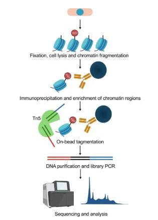November 2024, Allshire Lab, Springer Nature Authors Dewornu, F.S., Tong, P., Torres-Garcia, S., Pidoux, A., Allshire, R., and Shukla, M. Summary By Dipika Mishra, Akiyoshi LabChromatin immunoprecipitation followed by sequencing (ChIP-Seq) is one of the most widely used tools in molecular biology to probe protein DNA interactions and identify histone modifications across the genome. The basic protocol involves crosslinking proteins to DNA using formaldehyde followed by fragmentation of cross-linked DNA. In the next step, the DNA interacting protein is immunoprecipitated using specific antibody, the crosslinks are reversed by heat and the associated DNA is then analyzed. However, there are certain limitations involving traditional ChIP-Seq. These include the time involved, the huge amount of sample needed and the high background noise generated. Researchers in Allshire lab have overcome these limitations by adapting ChIPmentation technology that integrates ChIP with transposase based tagmentation for fission yeast. Their protocol uses a hyperactive Tn5 transposase that enables both DNA fragmentation and adapter tagging or tagmentation of immunoprecipitated chromatin immobilized on the beads. The DNA recovered after tagmentation process is then subjected to amplification by PCR to add sequences required for next generation sequencing. This method thus provides a rapid, low input ChIP-Seq workflow and generates a higher resolution mapping of the fission yeast genome. Schematic overview of ChIPmentation workflow in fission yeast. Cells are cross-linked, followed by lysis and immunoprecipitation. Tagmentation of enriched chromatin is performed using Tn5 transposase. Tagmented DNA is recovered and amplified for library preparation and subsequent sequencing. Related Links Journal URL PI Website DOI This article was published on 2025-06-13