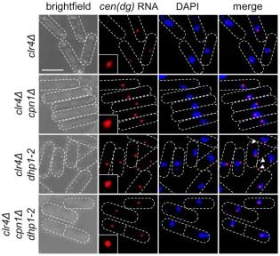 March 2025, Bayne Lab, PLOS Genetics Authors Zhang, H., Kapitonova, E., Orrego, A., Spanos, C., Strachan, J., and Bayne, E.H. Summary By Dipika Mishra, Akiyoshi LabHeterochromatin, or the ‘dark matter’ of the genome, plays a critical role in the maintenance of genome integrity and in regulation of gene expression. This dense region of the genome is characterised by a distinct pattern of chromatin modifications including histone hypo-acetylation and hypermethylation of lysine 9 of histone H3. Although previous studies have identified the mechanisms associated with the maintenance of pre-existing heterochromatin, the process of establishment of new heterochromatin is not well understood. To explore the molecular mechanisms underlying heterochromatin establishment in S. pombe, researchers in the Bayne lab developed a novel assay involving genetic abolition and re-establishment of heterochromatin. By using this assay to screen candidate deletion mutants, they identified a novel factor named Cpn1 to be essential for efficient heterochromatin establishment. Cpn1 is orthologous to human RNA binding protein CAPRIN1, and the researchers found that, similar to its human counterpart, Cpn1 also associates with cytoplasmic stress granules during stress. Furthermore, they uncovered evidence of interplay between heterochromatin integrity and ribonucleoprotein granule formation, and identified a specific role for Cpn1 in supporting heterochromatin establishment by facilitating removal of excessive heterochromatic transcripts. This study thus unlocks a new connection between RNA homeostasis and heterochromatin assembly. We discovered that Caprin protein (Cpn1) promotes assembly of heterochromatin at centromeres by facilitating removal of excess centromeric transcripts. The figure shows that centromeric (cen(dg)) transcripts over-accumulate at centromeres in the absence of Cpn1, and also accumulate in the cytoplasm in a Cpn1-dependent manner in the absence of the nuclease Dhp1, suggesting that Cpn1 helps target these transcripts for degradation in the cytoplasm. Related Links Journal URL PI Website DOI This article was published on 2025-08-14