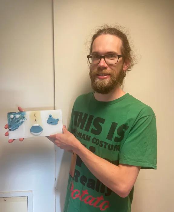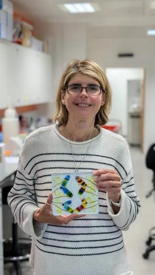 Meet the researchers who created tile artworks and the professional artist who produced the main artwork of the project. Researchers Andrew McAinshAndrew McAinsh is the Principal Investigator in Warwick Medical School. The aim of his lab is to understand the molecular machinery that is responsible for pushing and pulling chromosomes into the correct position at the correct time during cell division including egg maturation and early embryo development. Adele MarstonProfessor Adele Marston is a cell biologist who investigates how the genome is inherited during reproduction. Her research group use model organisms to identify genes, proteins and fundamental pathways that organise and sort chromosomes into new cells as they divide. Using patient-donated human eggs and informed by their studies in model organisms, the group investigate potential causes of female infertility and the effects of maternal age. Professor Marston is Director of the Wellcome Centre for Cell Biology and the new Research Discovery Platform for Hidden Cell Biology. Muriel ErentMuriel Erent is the Laboratory Manager in Andrew McAinsh team at the Warwick Medical School. Her role is to coordinate the day-to-day operations and support a wide variety of research projects, including human cell biology and reproductive science with the common theme of chromosome inheritance in cells.The making of the tile was a great experience. It is a great way to introduce scientific ideas to a wide audience and talk to patients about why the donations are so precious to us. Nigel BurroughsNigel Burroughs is a Professor at the Warwick Mathematics Institute. His main interests are in using mathematics and statistical methods to understand biological and medical phenomena. His lab collaborates with McAinsh group on investigating chromosome behaviour during cell division, including during oocyte maturation processes and early embryonic divisions in humans. Gerard PieperGerard is a Sir Henry Wellcome Postdoctoral Fellow at the University of Edinburgh's Wellcome Centre for Cell Biology. He studies how DNA is accurately segregated in frog and human egg cells.It was very fun to get to work with glass and to translate my day to day to work into “art”. It came out much better than I expected. As scientists, we are quite far removed from the patient experience and this project was a good opportunity to get a better understanding of what fertility patients go through. Geraldine HartshorneGeraldine holds the joint position focused on academic research and improvement of clinical IVF service. She has broad interests across the field of reproductive medicine, developed over a 40 year career, starting in Cambridge with a PhD under Professor Bob Edwards in the 1980s. Geraldine has developed key expertise in female fertility, meiosis and oocyte function. She advises patients and colleagues regarding embryo development and bespoke treatment plans and facilitates access to clinical resources for research.I was surprised how much I enjoyed the creativity of the ART project. The tiles we made have been visually pleasing as well as a great discussion point to make contact with people at conferences or other public settings. We have even had people wanting to buy our pieces! Overall, quite an eye-opener for me. Cerys CurrieDr Cerys Currie is a postdoctoral researcher at the University of Warwick, with Coventry Centre for Reproductive Medicine. Making the glass art was so much fun, and I love using the pieces to help explain our research to members of the public. They are always a favourite! Aleksandra ByrskaAleksandra is currently a third year PhD student in Warwick Medical School, supervised by Professors Andrew McAinsh and Geraldine Hartshorne. She works with human eggs and embryos, and her main research interest is meiosis, which is the cell division that forms gametes (oocytes and sperm). Aleksandra is looking into how this process is completed in human oocytes, and what can cause it to go wrong, mostly focusing on the effect of advanced female age on egg quality.I really enjoyed taking part in this public engagement project, not only creating the glass piece, but also talking to people about it afterwards! The glass art is an amazing tool to connect with the audience, and a great visual that helps to engage in conversations about science. Constandina KokiConstandina is a postdoctoral research fellow in Nigel’s Burrough’s group, funded by Wellcome Trust. Currently the Burrough group are developing and applying Bayesian computational methods for statistical analysis of spatial dynamics in human eggs. The group is collaborating with Andrew McAinsh’s lab in Warwick Medical School (WMB). Furthermore, the group are contributing in a project along with Siobhan Quenby in Biomedical Sciences (WMB) and the NHS, for human recurrent miscarriage. Alex PeggAlex Pegg completed the second half of her Masters program in reproductive sciences in the Marston lab where she was investigating how Meikin impacts kinetochore structure. She is currently a PhD student at the University of Copenhagen investigating chromosome mis-segregation in human and mouse eggs. Once Alex finishes her PhD, she would like to continue working with eggs, either in a post-doc or in a clinical setting. Mansour AboelenainMansour is a Postdoc Researcher at Wellcome Centre of Cell Biology, University of Edinburgh and Associate professor of Animal reproduction in Mansoura University, Egypt. His area of research involved working with oocytes and embryos from different animal models as mouse and bovine. This research started in Hokkaido University, Japan and Rutgers University, USA before moving to Edinburgh. Now, Mansour has a great opportunity to expand his area of research with human oocytes and embryos focusing on chromosome segregation errors research.Research in human oocytes and embryos is very important for understanding many reasons for infertility. This research cannot be done without the