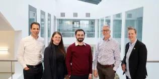 Gene control company Concinnity Genetics, recently spun out of the University of Edinburgh, has raised £3 million in an oversubscribed seed funding round that included Old College Capital (OCC) - the University of Edinburgh’s in-house venture investment fund. The investment was led by Eos Advisory with participation from Scottish Enterprise, OCC and Maven Capital Partners.Co-founded by bioengineers CEO Jessica Birt and CSO Dr Matthew Dale, both from Professor Susan Rosser’s UK Centre for Mammalian Synthetic Biology, Concinnity uses unique AI technology to build gene control systems that improve the safety of gene therapies.Gene therapies have the potential to revolutionise health care by treating or even curing a variety of intractable diseases, but they need to be delivered precisely into the body to avoid side effects. Concinnity’s novel, RNA-based systems enable the precise control of gene therapies even after dosing, conveying the ability to respond to and reduce their own side effects as well as improve the efficacy of these innovative treatments. L-R Mark Beaumont, Partner at Eos; Jessica Birt, CEO and Co-founder; Dr Matthew Dale, CSO and Co-founder, Professor David Venables, Chair of Board; Professor Susan Rosser, Chair of Scientific Advisory Board - Image credit: Stewart Attwood The seed funding round will be used to initiate three new programmes developing control systems targeted at key applications within the cell and gene therapy market, as well as continuing to develop Concinnity’s existing control systems with the aim of obtaining critical data to initiate partnerships with customers.Twice winners at Scotland’s innovation competition Converge Challenge, Ms Birt and Dr Dale were supported to form the company by Edinburgh Innovations (EI) and benefitted from two years as part of Scottish Enterprise’s High Growth Spinout Programme. We are so excited to be taking the next step in our spin-out journey and want to sincerely thank all the investors and supporters who have helped us make it happen. Our ambition is to be the go-to partner for gene control to make gene and cell therapies as safe as possible. This commitment from our investors, building on the ongoing support from Scottish Enterprise, speaks to the potential they see in our work, and we look forward to using the funding to further develop our technology.” Jessica Birt CEO and Co-founder Concinnity Genetics Engineering biology is a major strength of the University of Edinburgh, catalysing novel solutions across our three mission areas of future health and care, data and AI for good and climate and sustainability. Sophisticated gene control systems have the potential to revolutionise advanced therapeutics, enabling new kinds of treatments that will impact future health. We are proud to continue to support Concinnity Genetics on their translational journey from lab to clinic Dr Andrea Taylor CEO, Edinburgh Innovations Related Links Concinnity GeneticsUK Centre for Mammalian Synthetic Biology This article was published on 2024-12-16