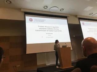 Domi presenting her poster at BioMalPar XVIII: biology and pathology of the malaria parasite at EMBL Heidelberg.