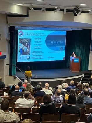 Neelakshi presenting her work on Plasmodium DUBs at the 34th annual Molecular Parasitology Meeting XXXIV at Woods Hole, Massachusetts.
