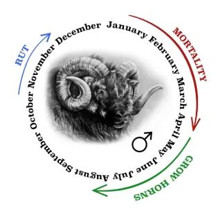 Outline of the seasonal behaviour of Soay sheep. The lives of sheep are dictated by the seasons. For much of the year, males live in bachelor groups occupying particular home ranges and feeding hard. During the spring and early summer they grow a new horn increment and put on condition. As autumn approaches, they engage in increasing levels of head-butting and fighting, and by the rut in November they are roving around the island, assessing individual females for oestrus status. If a male finds an oestrous female, he will try to defend her for several hours and mate with her repeatedly. However, only large, mature males, with big horns can defend a female for long, and younger, smaller males and those with scurred horns (small misshapen horns, see Meet the Sheep) constantly search for oestrous females, chase them around and get quick matings if they can. By early December the rut is over, the following four months are the toughest of the year for Soay sheep as the food supply diminishes and climatic conditions are at their harshest. Most natural deaths occur between February and April with lambs of the previous year and males (who enter the winter in poor condition after rutting) most likely to die. In April, the ewes give birth to lambs - most have a single lamb, but between 2% and 23% (varying across years) have twins. The first few hours and days of life are a perilous time for if either the lamb or the ewe is too weak or the weather too foul the lamb may die. If all is well the lambs grow at about 100 g per day, by August they reach about half their mothers' size and are being weaned. Since plant growing conditions are generally fine over the summer most ewes recover condition sufficiently to conceive in the following rut. This article was published on 2024-08-02